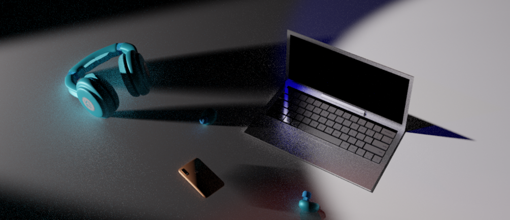 3D model of a Laptop, Headphone, Earbuds, Smartphone in a .blend file